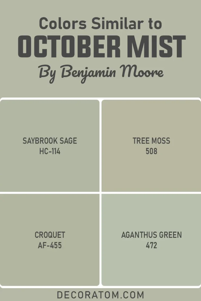 Finding a color that closely resembles October Mist is trickier than it sounds. The combination of warm gray, muted green, and that particular mid-tone depth is a specific formula, and not every sage green in the paint aisle hits the same notes.