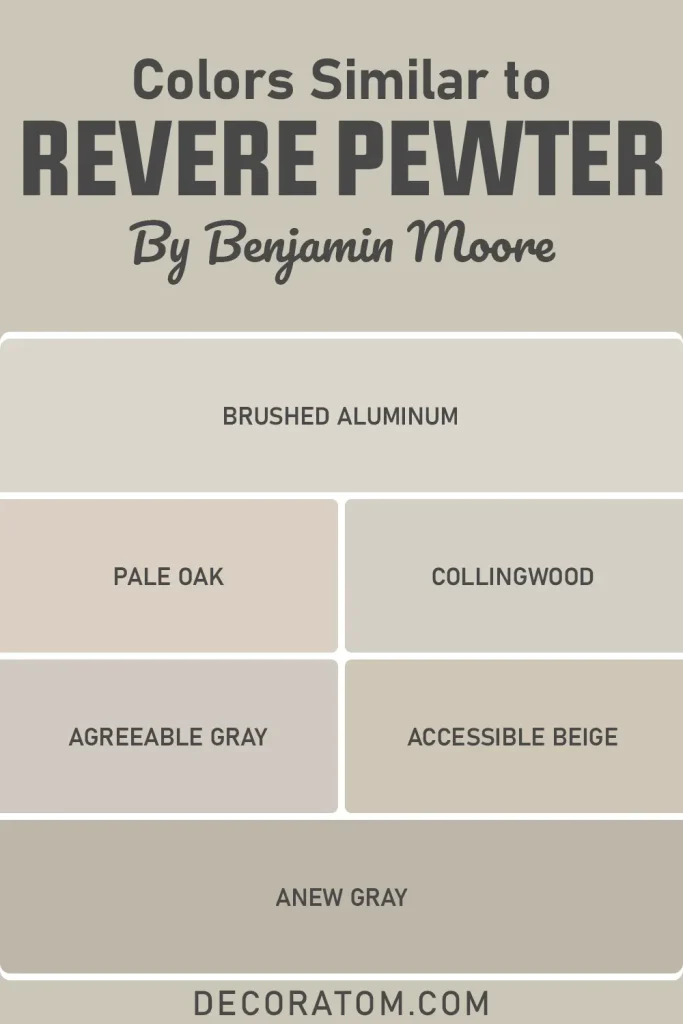 When a color becomes as popular as Revere Pewter, it is natural for people to search for shades that feel similar. Sometimes the goal is to find a close alternative from another paint brand. Other times people simply want a color that gives the same general mood but with a slightly lighter or darker appearance.