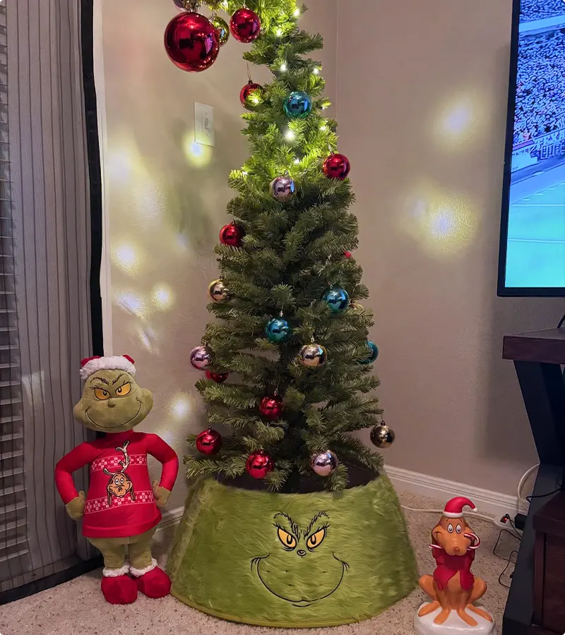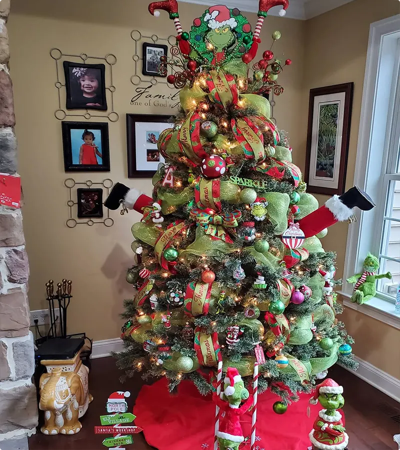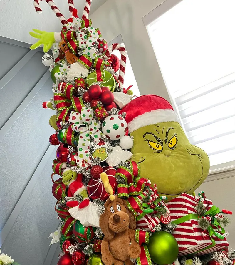This is peak Grinch mischief, don’t you think? It looks like the Grinch literally threw himself into the Christmas tree and got stuck, which is why this idea is so funny and dynamic.