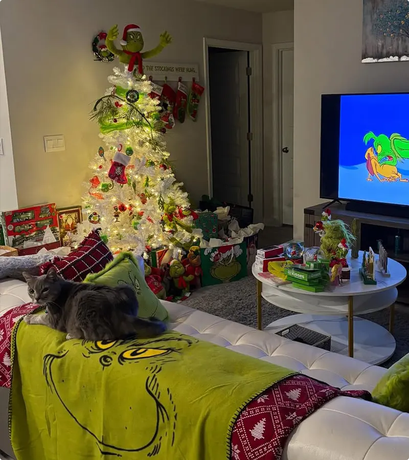 - Pillows and Blankets: Add Grinch pillows or soft green blankets to your couch.