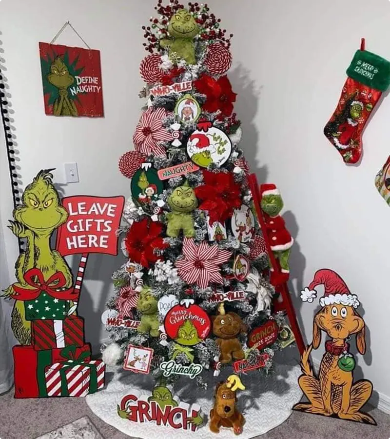 You can find Grinch decorations in many forms, like ornaments, signs, wreaths, or pillows with his silly face. Some people even decorate a full Grinch Christmas tree with green and red colors. You can buy Grinch items in stores or make your own DIY Grinch crafts at home using paper, felt, or paint.