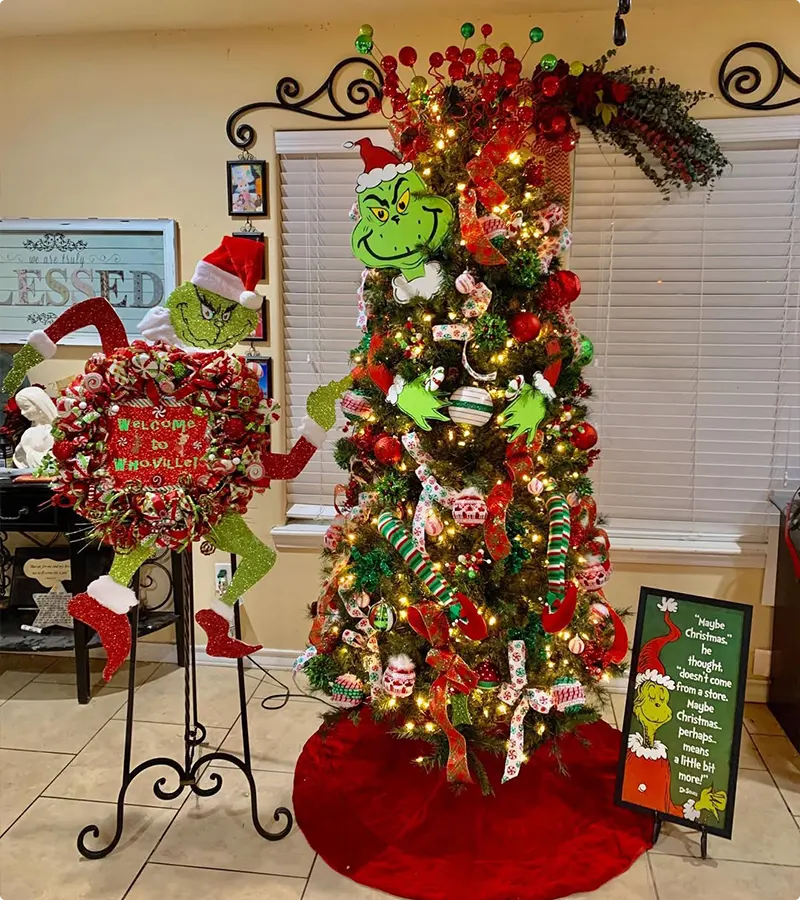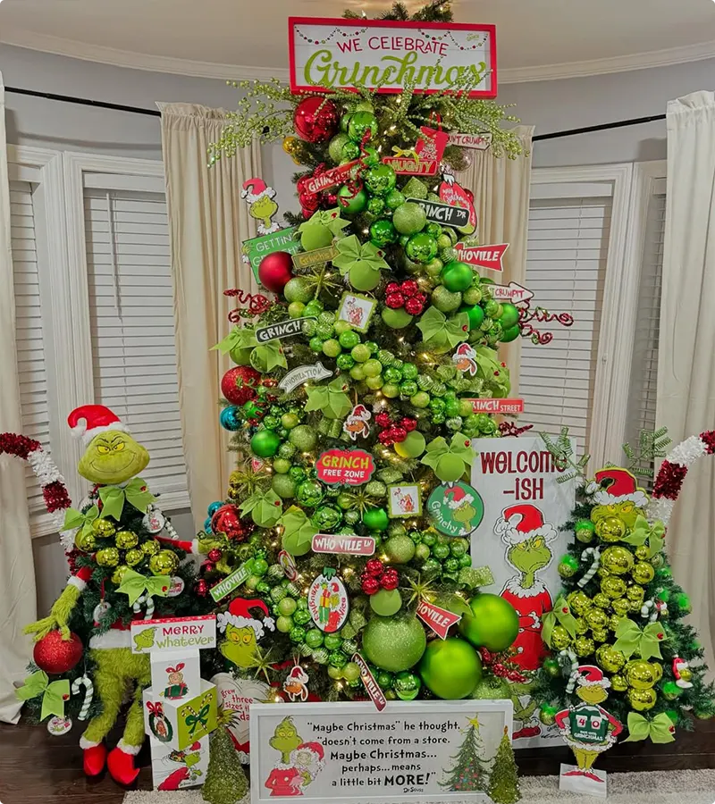 The Grinch is that funny green guy from How the Grinch Stole Christmas, and even though he tried to stop Christmas, he ended up loving it. So now, lots of people decorate their homes with Grinch-themed Christmas ideas to make the holidays extra special.