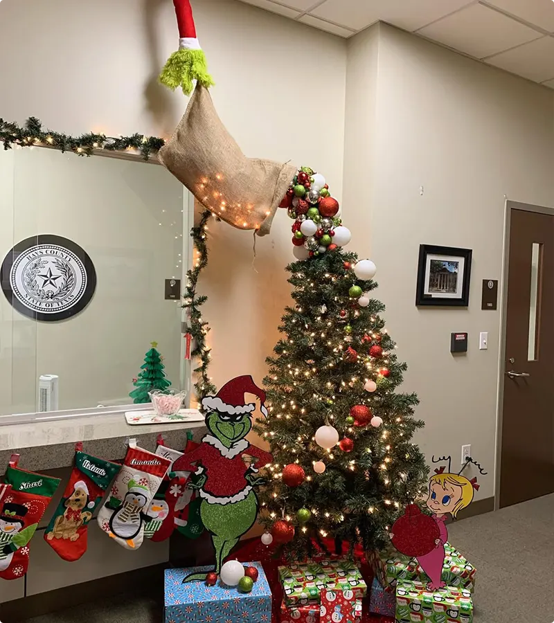 Decorating your home with a Grinch theme is easy and fun! You can start by choosing lots of green and red decorations, those are the main Grinch colors. Then, add a few silly touches that remind you of the story.