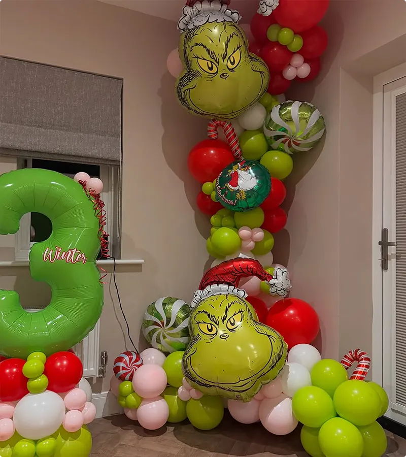 Plus, the little balloon presents at the bottom tie everything into one spectacular, self-contained party display. This is definitely one of those Grinch Christmas Decorations that would be the centerpiece of any big celebration!