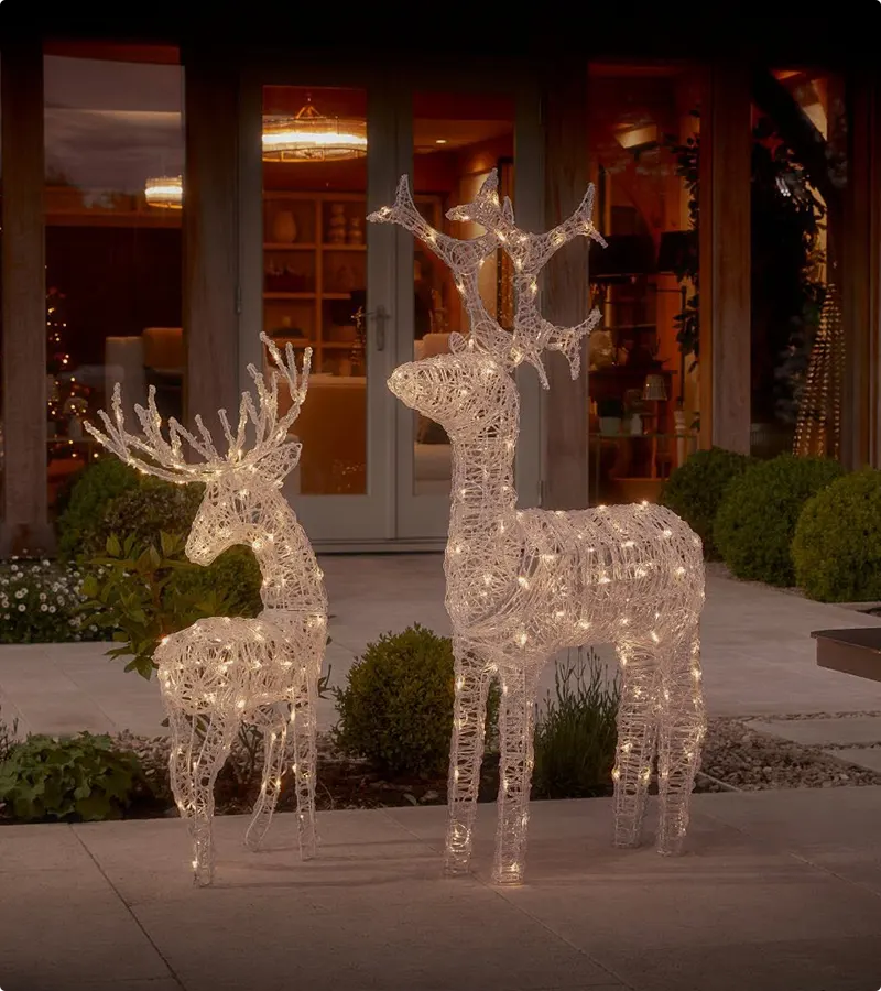 These two reindeer are just the epitome of subtle elegance, aren’t they? If you want to put up Outdoor Christmas Decorations that feel sophisticated and clean, focusing on these beautiful woven, lighted figures is the way to go.