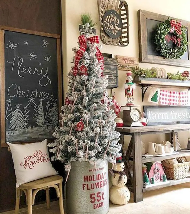 The contrast between the dark, moody chalkboard and the light, distressed wood shelf unit. It just looks like Christmas on the farm, doesn’t it?